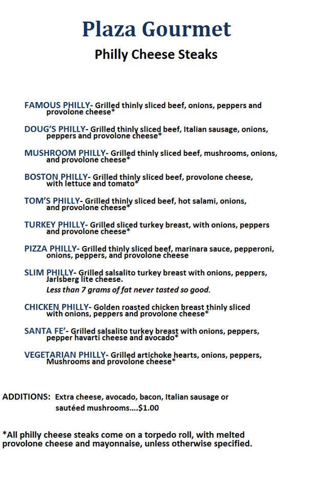 Grilled thinly sliced beef, mushrooms, onions, and provolone cheese. Come on torpedo roll, with melted provolone cheese and mayonnaise, unless otherwise specified.